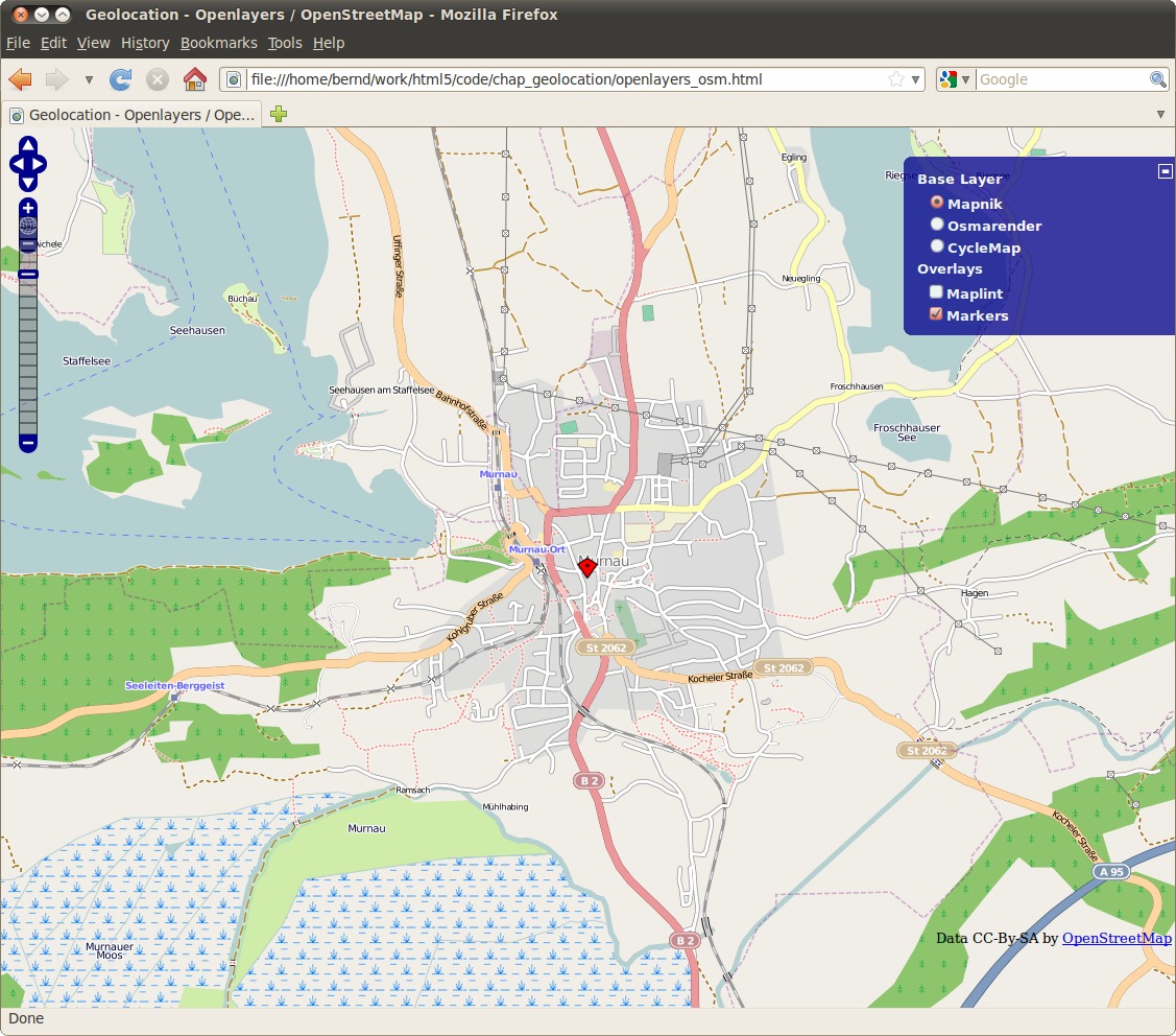 | 219 | Abbildung 7.3: Der aktuelle Standort, dargestellt mit OpenLayers und OpenStreetMap Erstellt mit Firefox 3.6 | |