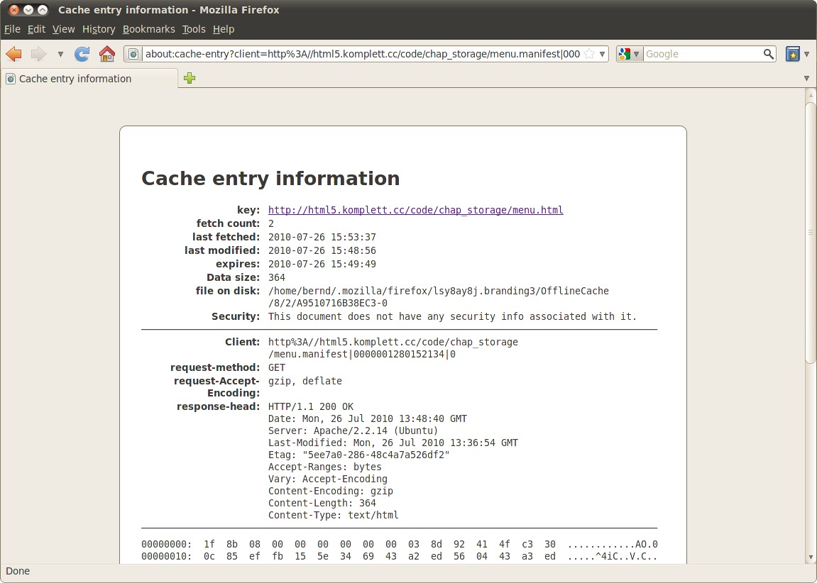 | 246 | Abbildung 8.5: Firefox-Informationen zu einem Element im Offline-Speicher Erstellt mit Firefox 4.0b | |