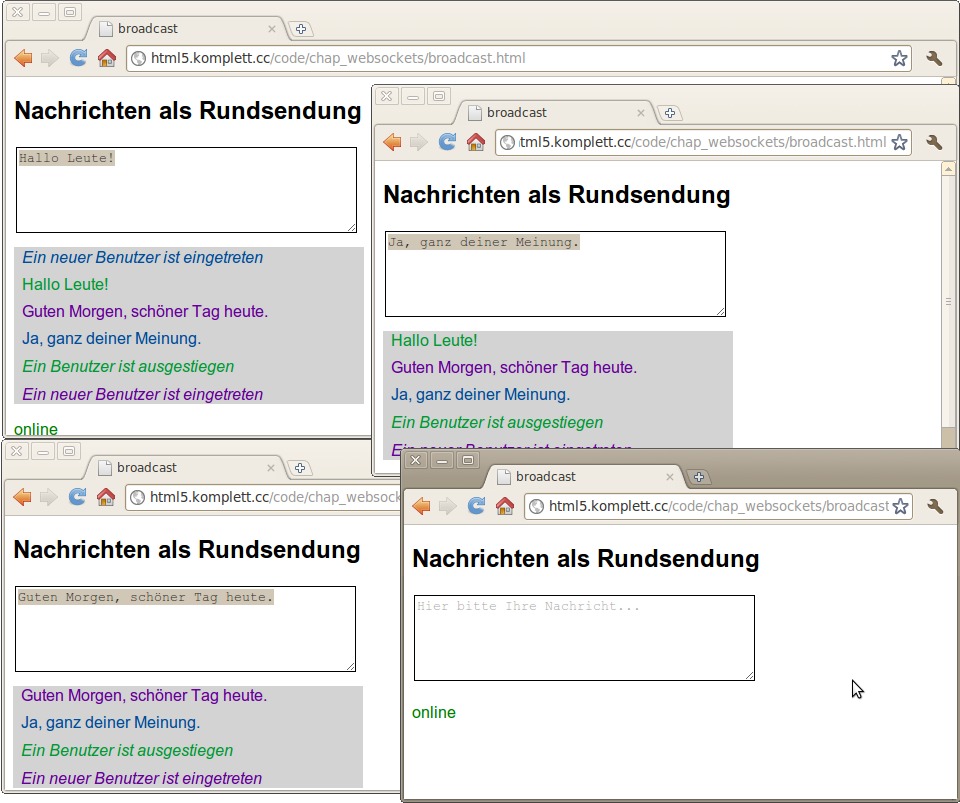 | 265 | Abbildung 9.1: Vier Verbindungen zu dem Websocket-Broadcast-Server Erstellt mit Chrome 6 | |