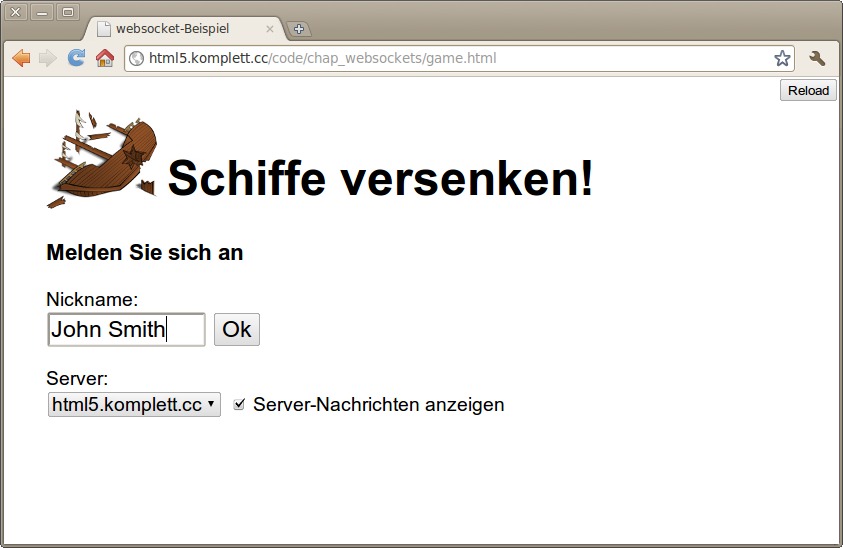 | 271 | Abbildung 9.3: Die Startseite des Spiels »Schiffe versenken!« Erstellt mit Chrome 6 | |
