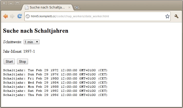| 284 | Abbildung 10.1: Web Workers auf der Suche nach Schaltjahren Erstellt mit Chrome 6 | |