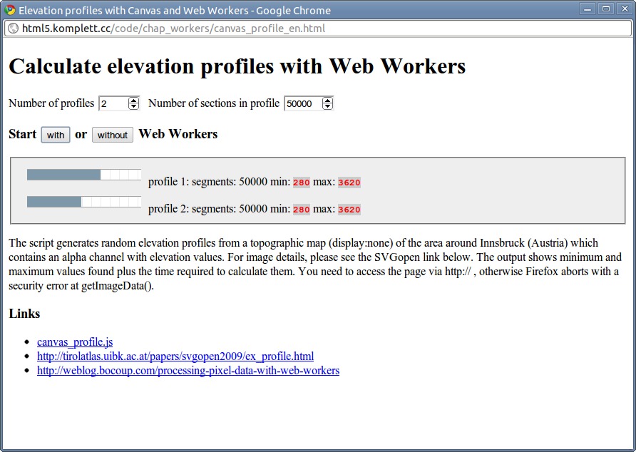| 254 | Figure 10.2 Web workers calculating two altitude profi les simultaneously created with: Chrome 6 | |